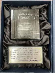 この度、弊社はダイハツ 正規販売店 2023年度 軽自動車新車販売 スーパーピット店 優秀販売店表彰を頂きました。これはひとえに、弊社にてダイハツ車の新車購入を頂いたお客様のおかげです。
