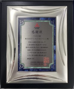 この度、弊社は三菱自動車工業様より2021年度の優秀販売店表彰を頂きました。こちらの表彰は、三菱自動車工業の販売とサービスにおいて、優秀な成績を上げた全国の販売店に対し表彰されるものです。昨年度、三菱自動車工業の登録販売店における新車販売台数において、Aランクとなりプラチナ賞を受賞致しました。これも弊社にて三菱車をお買い上げ頂きましたお客様のおかげです、誠にありがとうございました。これからも弊社では三菱車の拡販に努めてまいります。また、弊社各店にてekクロスやekクロススペース、デリカD:5など好評販売中ですので、ぜひご来店ください。