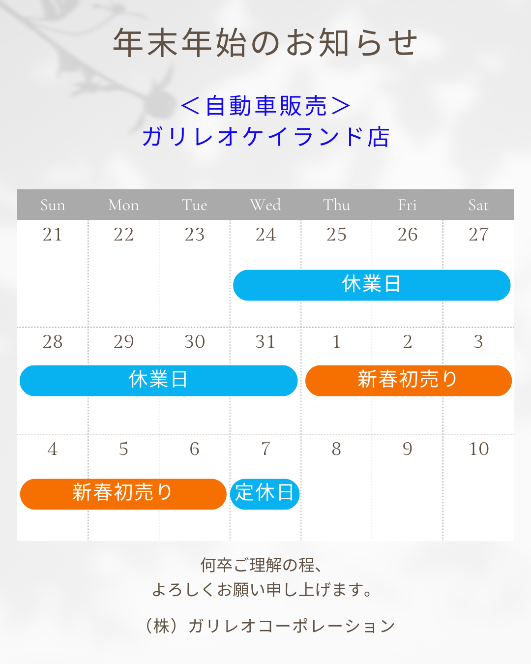 1月1日(木)より、ガリレオケイランドにて新春初売りを行いますので、ぜひご来場ください。