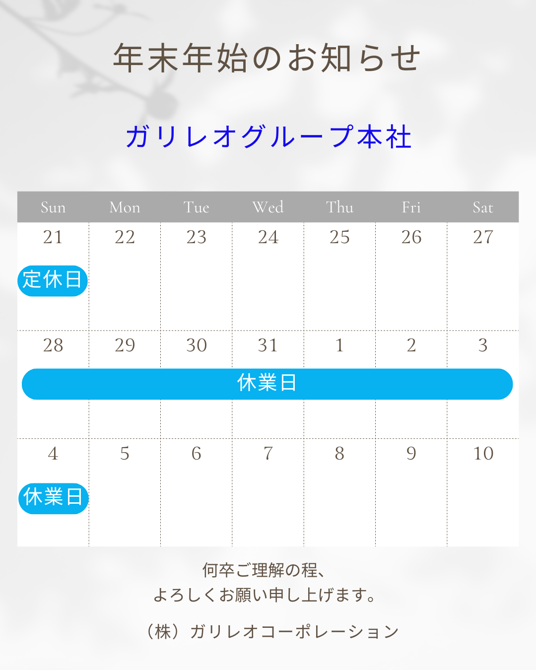 日頃よりガリレオグループ各店をご利用頂きまして誠にありがとうございます。