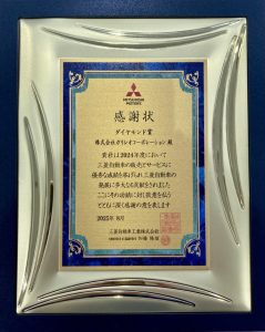 この度は、弊社は三菱自動車工業様より2024年度の優秀販売店表彰を頂きました。 こちらの表彰は、三菱自動車工業の販売とサービスにおいて、優秀な成績を上げた全国の販売店に対し 表彰されるものです。昨年度に続き、三菱自動車工業の登録販売店における新車販売店台数において、 最高位ダイヤモンド賞を受賞致しました。これも弊社にて三菱車をお買い上げ頂きましたお客様のおかげです。 誠にありがとうございました。これからも弊社では三菱車の拡販に努めてまいります。 また、弊社各店にて大人気のデリカミニや、ekクロスEV、デリカD:5など人気車種や注目車種を中心に好評販売中 ですので、ぜひご来店下さいませ。